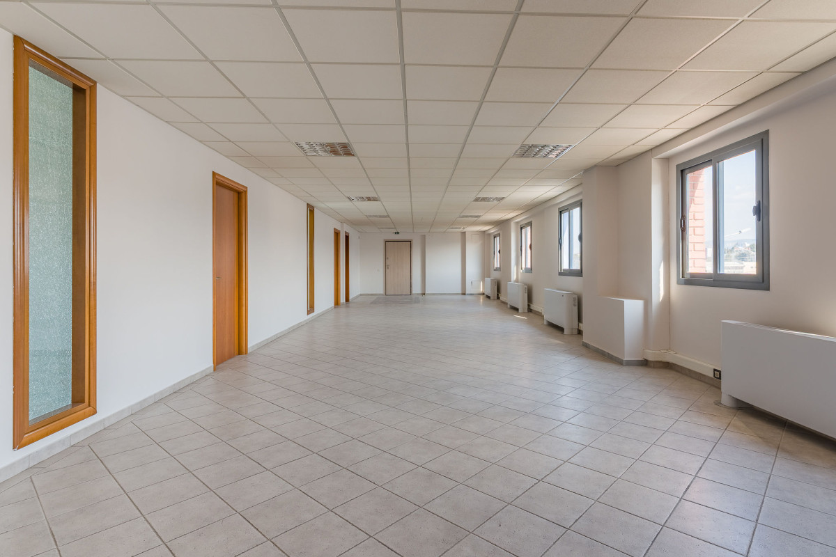 Ο όροφος αναπτύσσεται σε δύο μεγάλους ενιαίους χώρους συνολικής επιφάνειας άνω των 180 τ.μ., οι οποίοι μπορούν να υποστηρίξουν οργανωμένη διάταξη open desks, production teams ή corporate hubs.