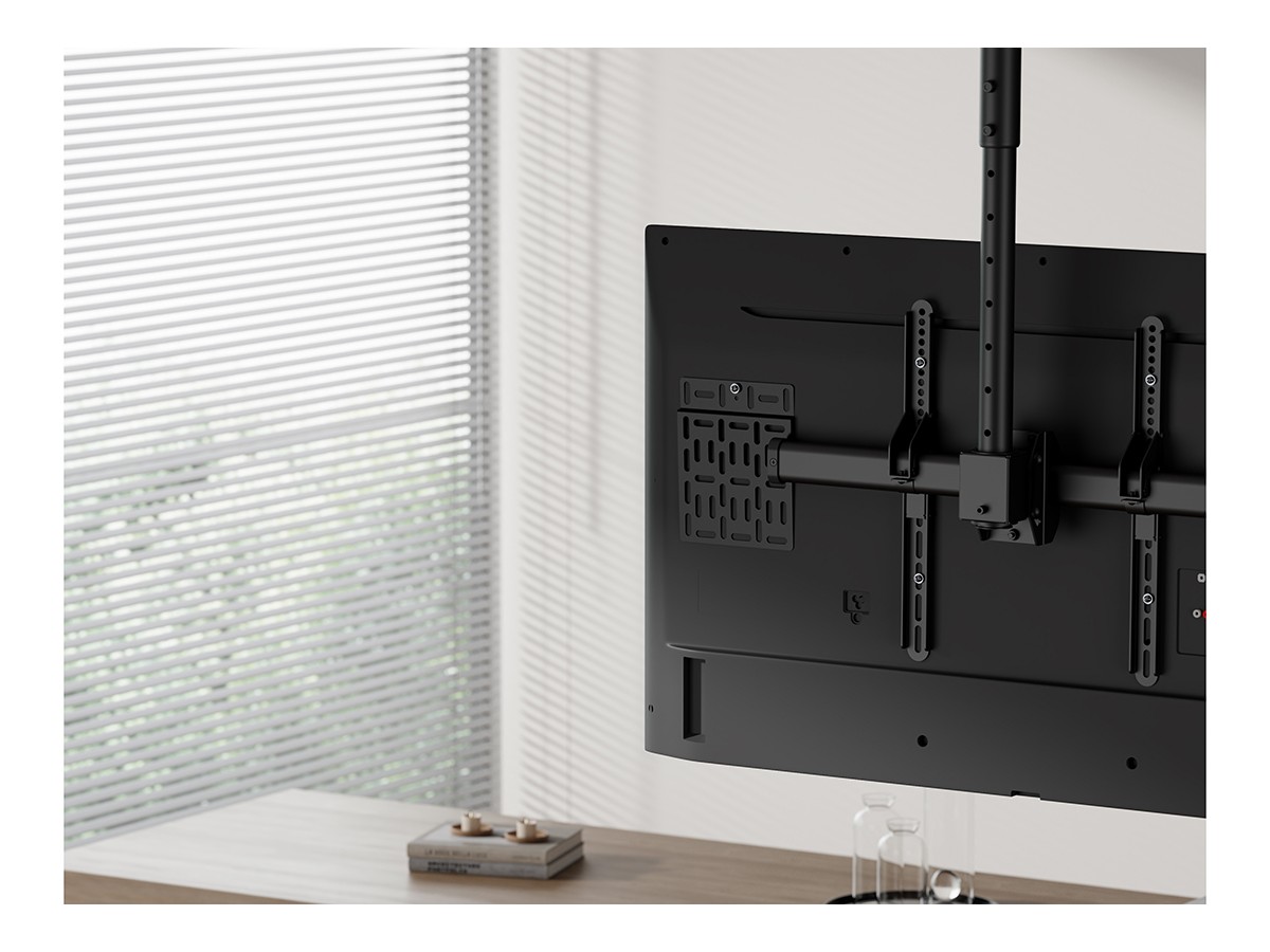Multibrackets Pro Series solution for integrating a storage tray behind the display. Our M Universal Media Mount panel is a component storage slide out panel that facilitates easy access and concealed mounting of AV equipment behind displays. Now AV equipment can be accessed withoth the need to remove the display.